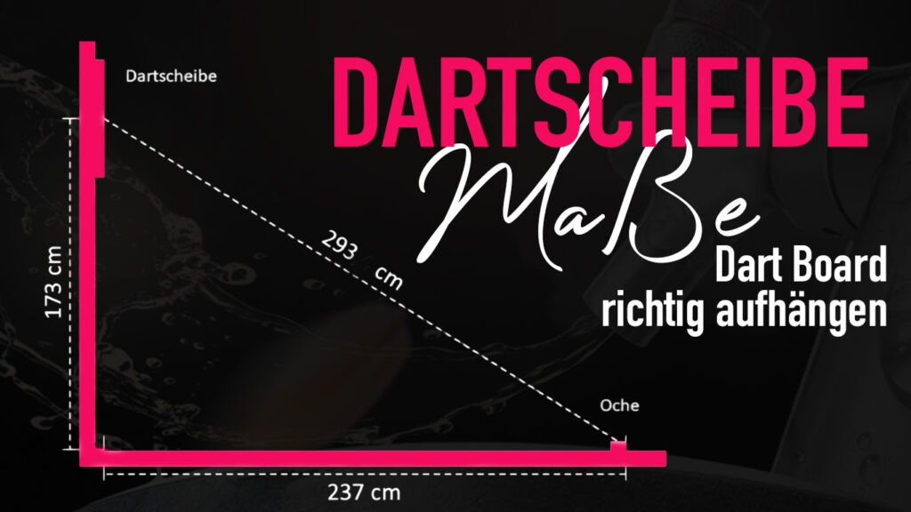 Egal ob Steeldart oder E-Dart: Die internationalen Maße sind klar geregelt. Die Mitte des Bullseyes muss exakt 1,73 Meter über dem Boden hängen. Der Wurfabstand beträgt beim Steeldart und beim E-Dart 2,37 Meter, gemessen von der Vorderkante der Scheibe bis zur Abwurflinie.