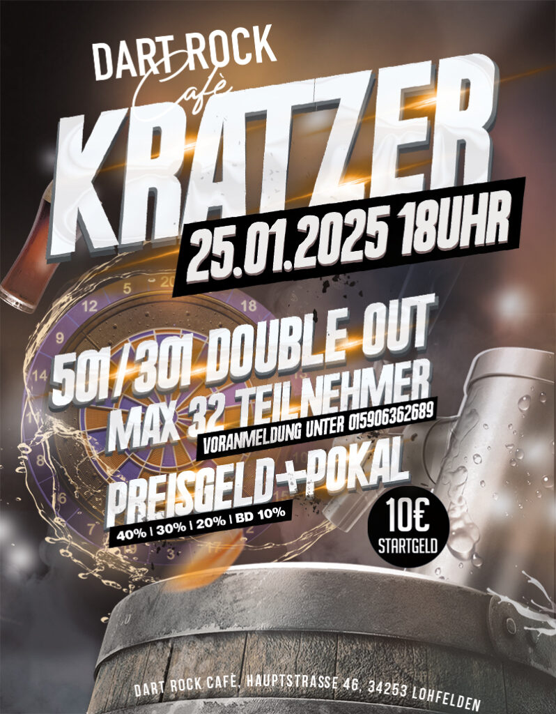 Egal, ob Anfänger oder erfahrener Spieler – unser Kratzer Turnier ist der perfekte Ort, um dein Können zu zeigen und in einer entspannten, aber wettbewerbsfähigen Atmosphäre zu spielen! In unserer gemütlichen Kneipe kommen Spieler aller Spielstärken zusammen, um spannende Matches zu erleben.